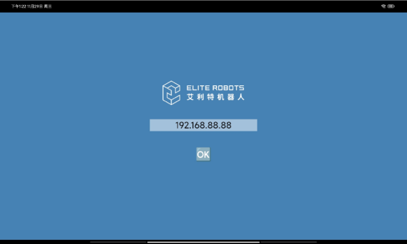 (4)打開提前安裝好的Elite-APP,進入如下頁面點擊OK,進入網頁版示教器。