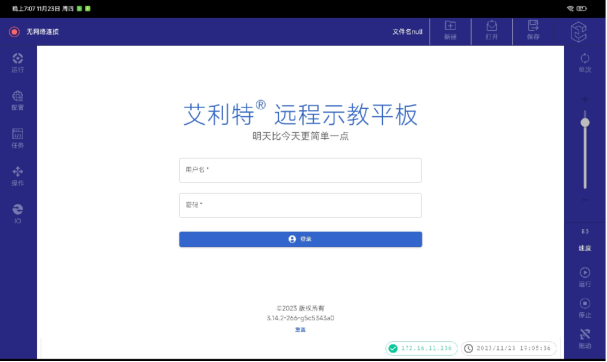 (4)進入網頁版示教器登錄界面后,輸入用戶名和密碼,點擊登錄即可進入網頁版示教器的操作界面。