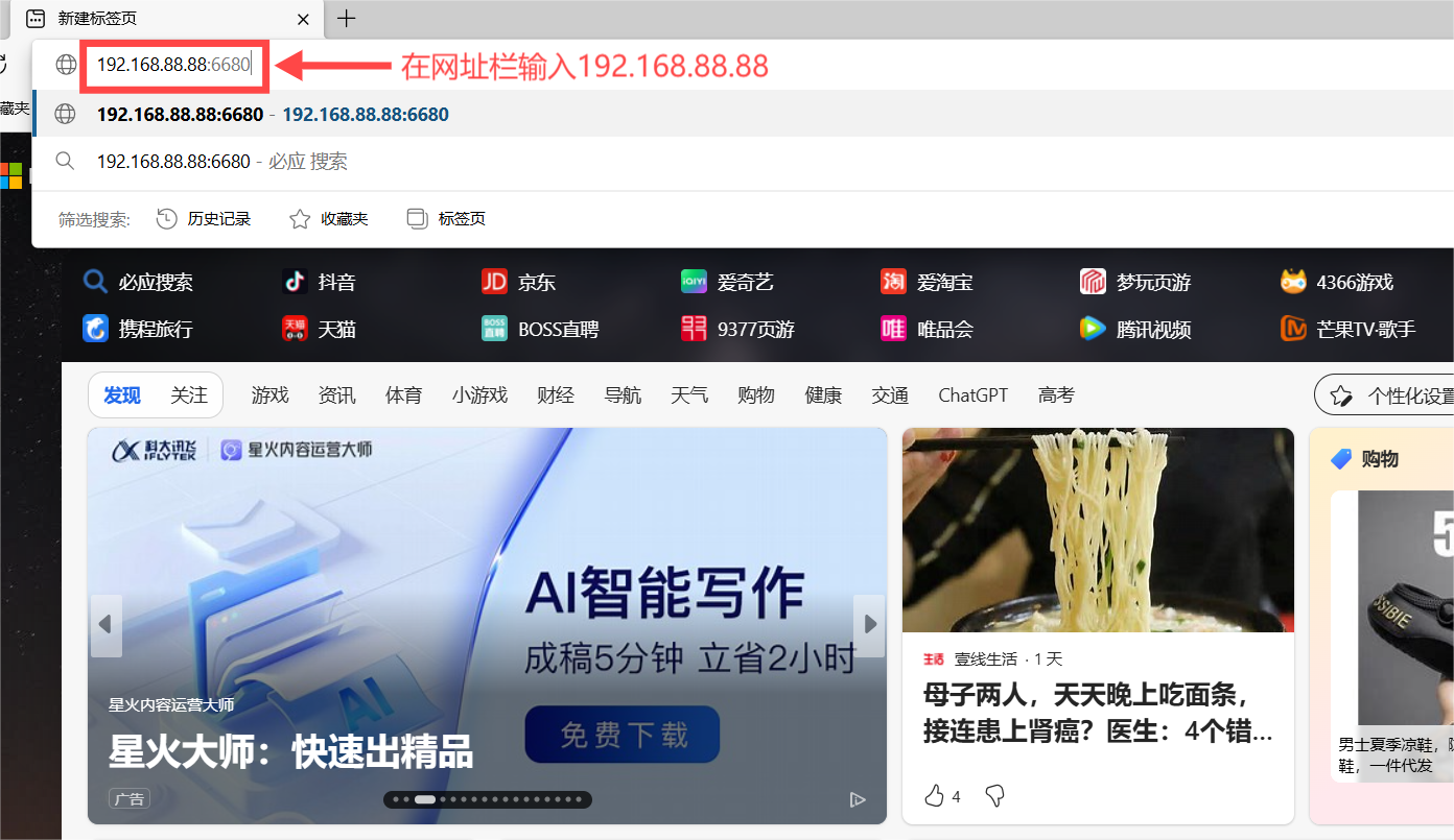 (2)"192.168.88.88:6680"里面的冒號必須是英文格式下的冒號,不然會訪問失敗。