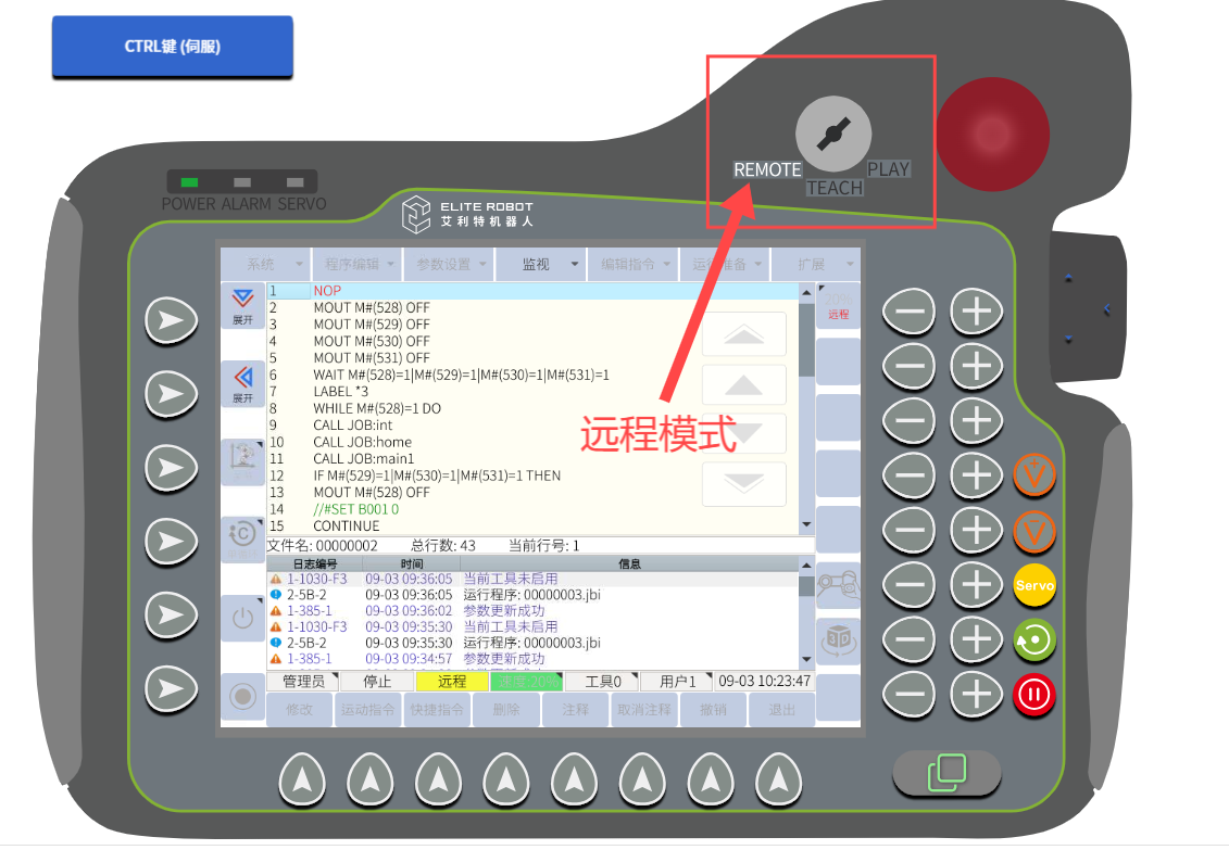 示教器右上角的鑰匙應該切換置遠程模式即可。