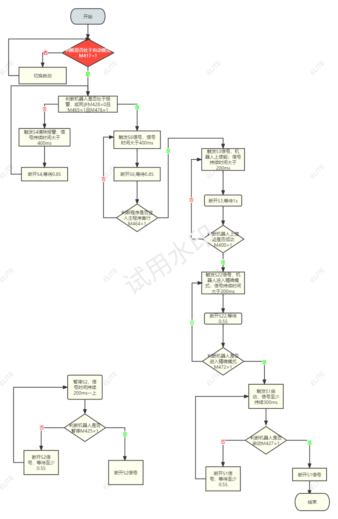 機(jī)器人在精確模式且M600=1且機(jī)器人不在運(yùn)動(dòng)則外部啟動(dòng)